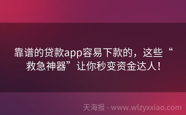 靠谱的贷款app容易下款的,这些“救急神器”让你秒变资金达人!