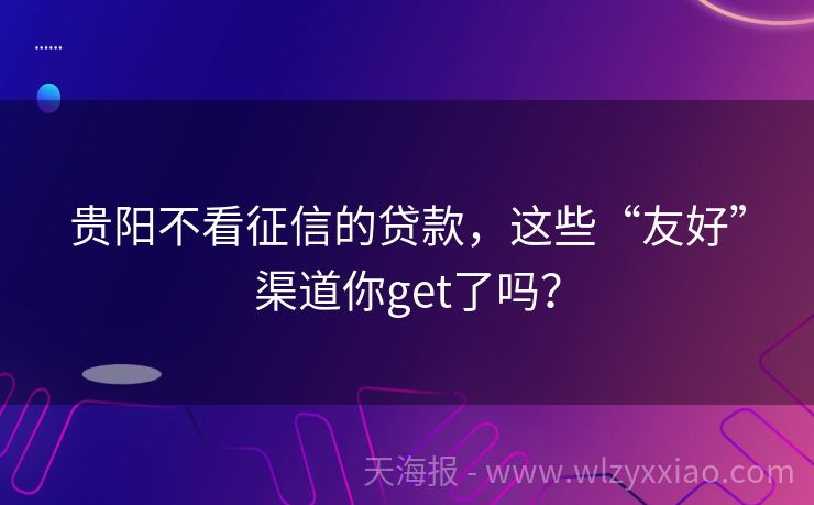 贵阳不看征信的贷款,这些“友好”渠道你get了吗?