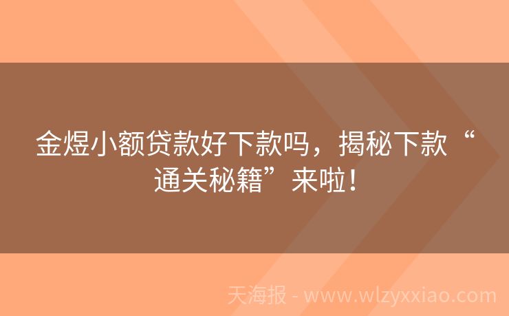 金煜小额贷款好下款吗,揭秘下款“通关秘籍”来啦!