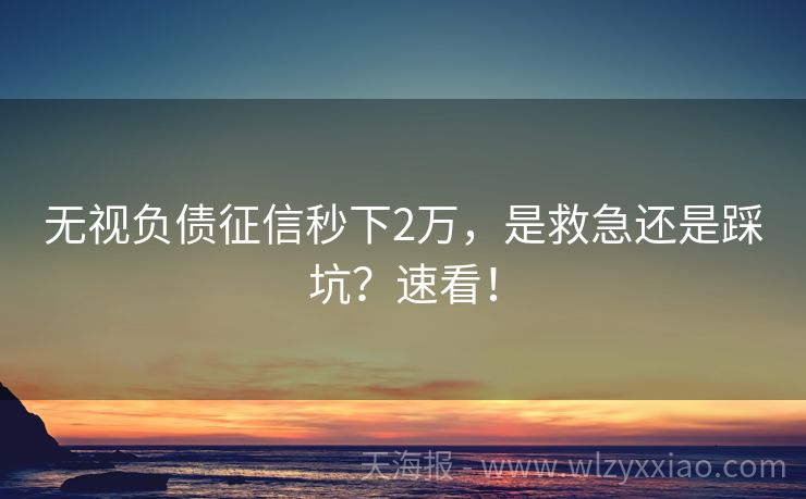 无视负债征信秒下2万,是救急还是踩坑?速看!