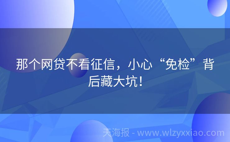 那个网贷不看征信,小心“免检”背后藏大坑!