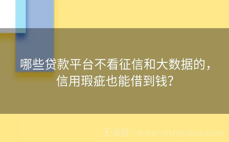 哪些贷款平台不看征信和大数据的,信用瑕疵也能借到钱?