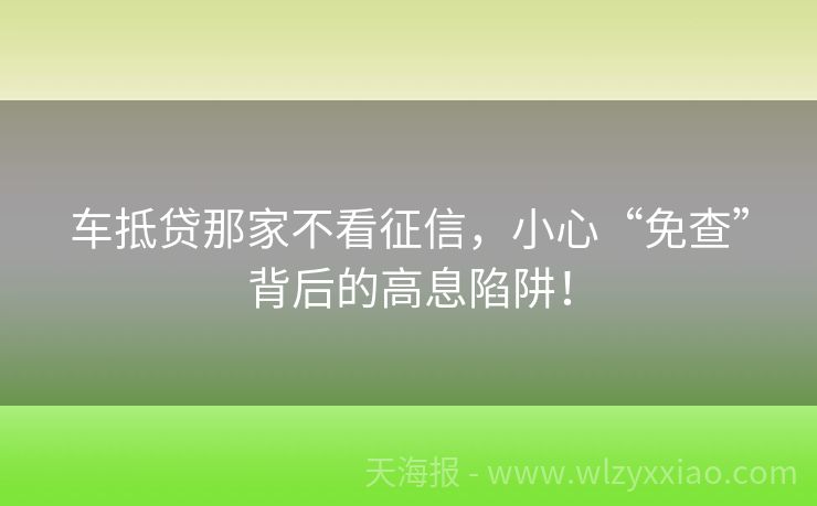 车抵贷那家不看征信,小心“免查”背后的高息陷阱!