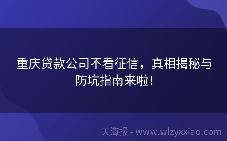 重庆贷款公司不看征信,真相揭秘与防坑指南来啦!