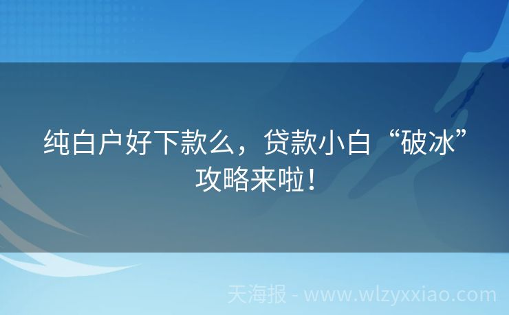 纯白户好下款么,贷款小白“破冰”攻略来啦!