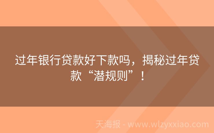 过年银行贷款好下款吗,揭秘过年贷款“潜规则”!