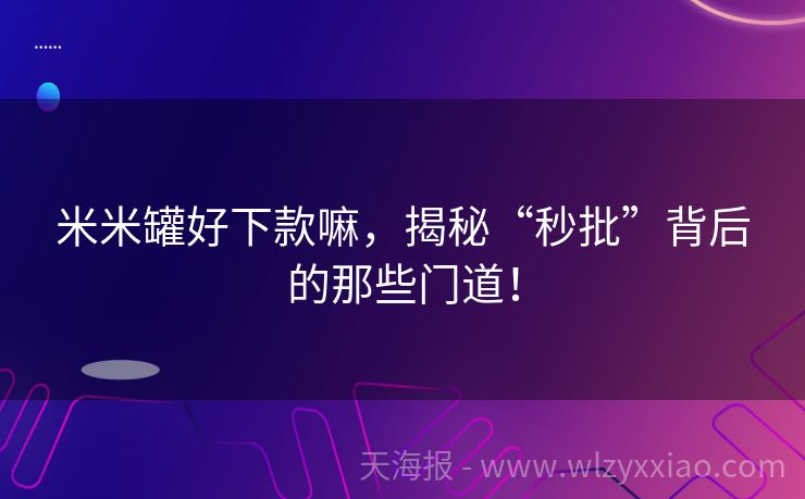 米米罐好下款嘛,揭秘“秒批”背后的那些门道!