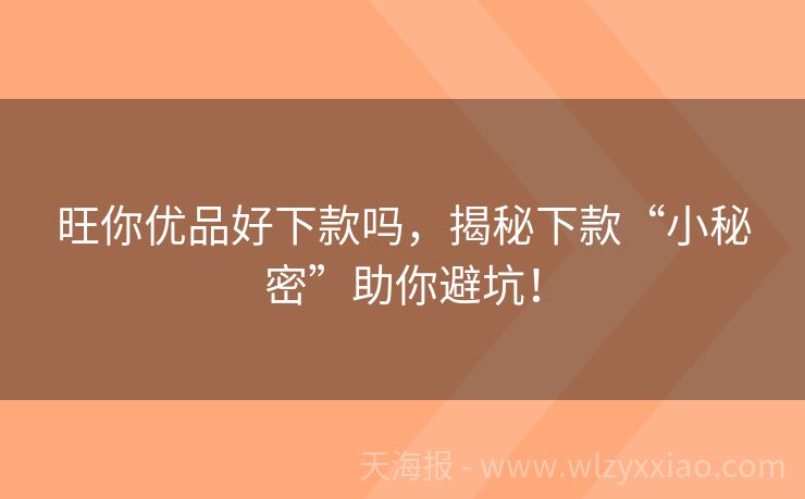 旺你优品好下款吗,揭秘下款“小秘密”助你避坑!