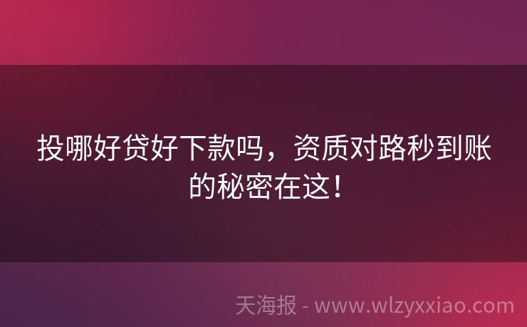 投哪好贷好下款吗,资质对路秒到账的秘密在这!
