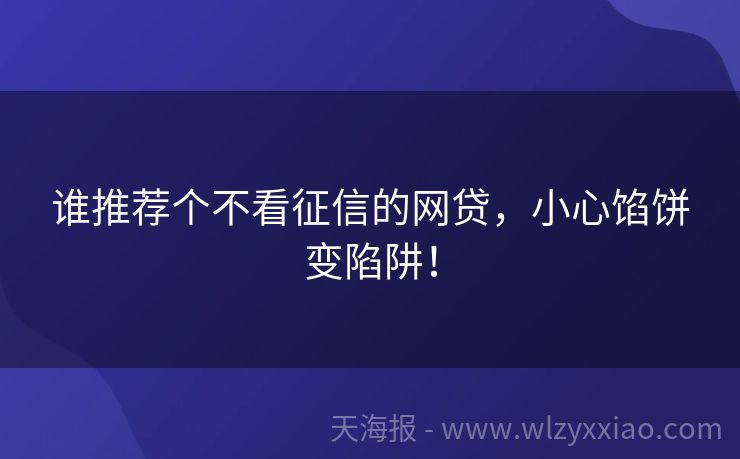 谁推荐个不看征信的网贷,小心馅饼变陷阱!