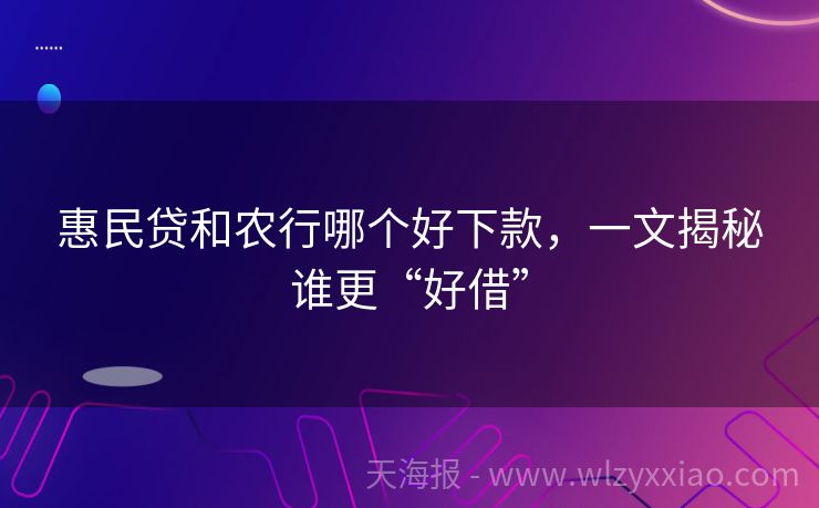 惠民贷和农行哪个好下款,一文揭秘谁更“好借”