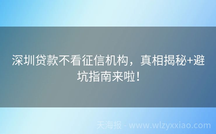 深圳贷款不看征信机构,真相揭秘+避坑指南来啦!