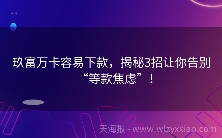 玖富万卡容易下款,揭秘3招让你告别“等款焦虑”!
