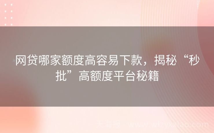 网贷哪家额度高容易下款,揭秘“秒批”高额度平台秘籍