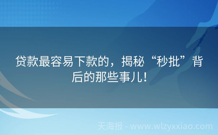 贷款最容易下款的,揭秘“秒批”背后的那些事儿!