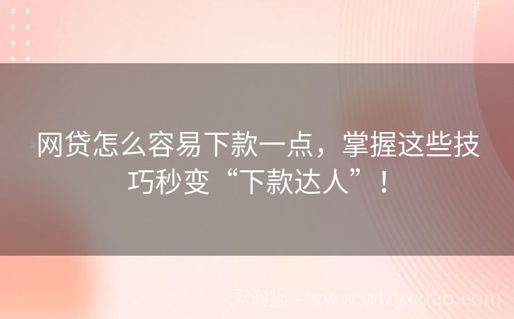 网贷怎么容易下款一点,掌握这些技巧秒变“下款达人”!