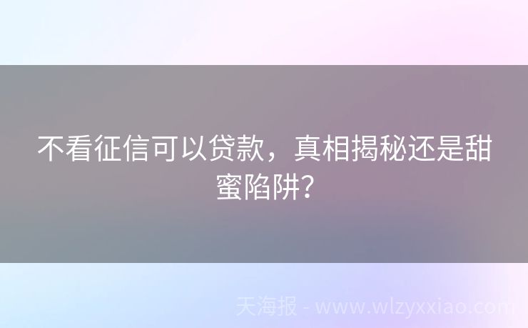 不看征信可以贷款,真相揭秘还是甜蜜陷阱?