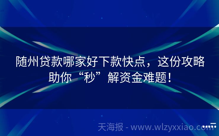 随州贷款哪家好下款快点,这份攻略助你“秒”解资金难题!