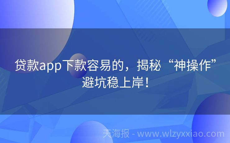 贷款app下款容易的,揭秘“神操作”避坑稳上岸!