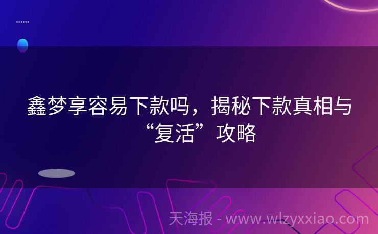 鑫梦享容易下款吗,揭秘下款真相与“复活”攻略