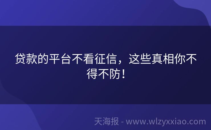 贷款的平台不看征信,这些真相你不得不防!